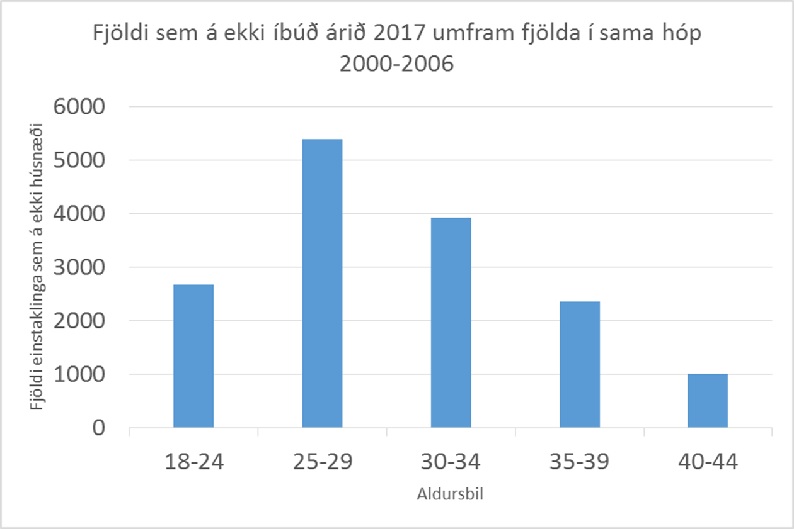 Línurit 6. Umframfjöldi sem á ekki íbúð 2017 samanborðið við 2000-2006. Heimild Þjóðskrá Íslands, Hagstofa Íslands.