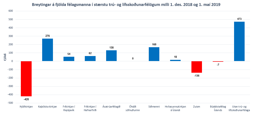 Tölurnar byggja á skráningu einstaklinga í trúfélög samkvæmt skráningu í þjóðskrár Íslands.