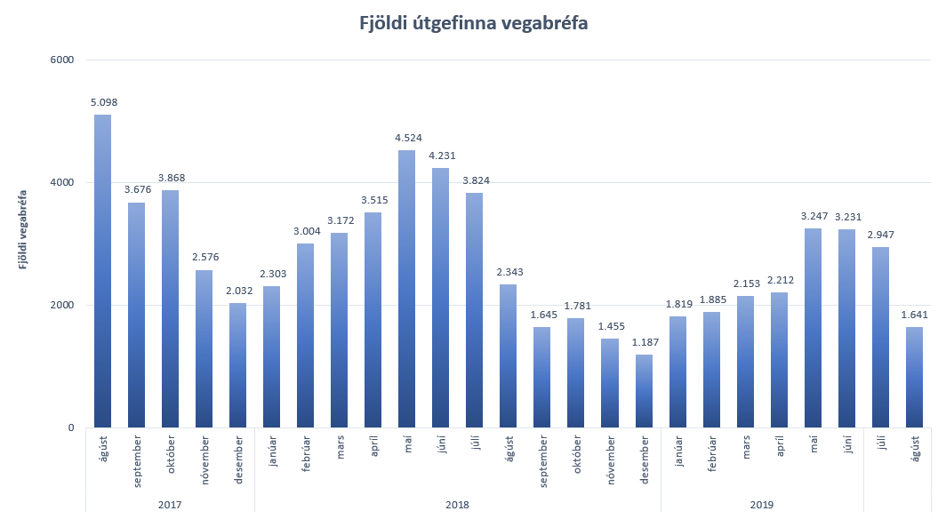 Í ágúst 2019 voru 1.641 íslensk vegabréf gefin út. Til samanburðar voru 2.343 vegabréf gefin út í ágúst 2018. Fækkar því útgefnum vegabréfum um 30% milli ára.